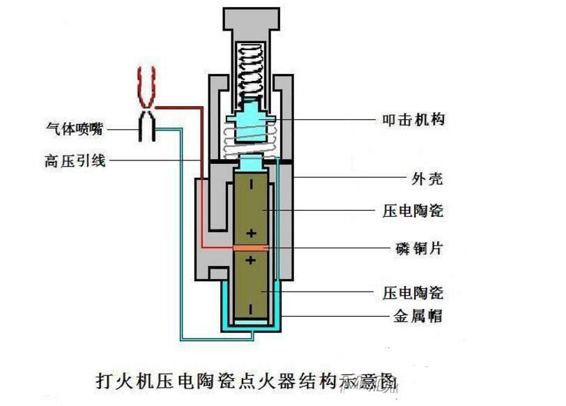 3、壓電打火機(jī) 煤氣灶上用的一種新式電子打火機(jī),就是利用壓電陶瓷制成的。只要用手指壓一下打火按鈕,打火機(jī)上的壓電陶瓷就能產(chǎn)生高電壓,形成電火花而點(diǎn)燃煤氣,可以長(zhǎng)久使用。所以壓電打火機(jī)不僅使用方便,安全可靠,而且壽命長(zhǎng),例如一種鈦鉛酸鉛壓電陶瓷制成的打火機(jī)可使用100萬(wàn)次以上。